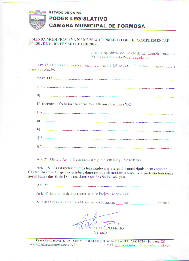 Ementa: ALTERA DISPOSITIVOS DO PROJETO DE LEI COMPLEMENTAR N°201/14DE AUTORIA DO PODER LEGISLATIVO.
