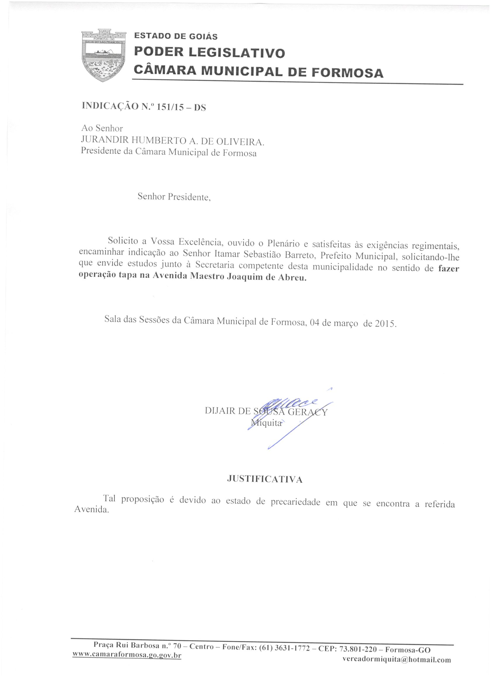 Ementa: FAZER OPERAÇÃO TAPA BURACO NA AVENIDA MAESTRO JOAQUIM DE ABREU.