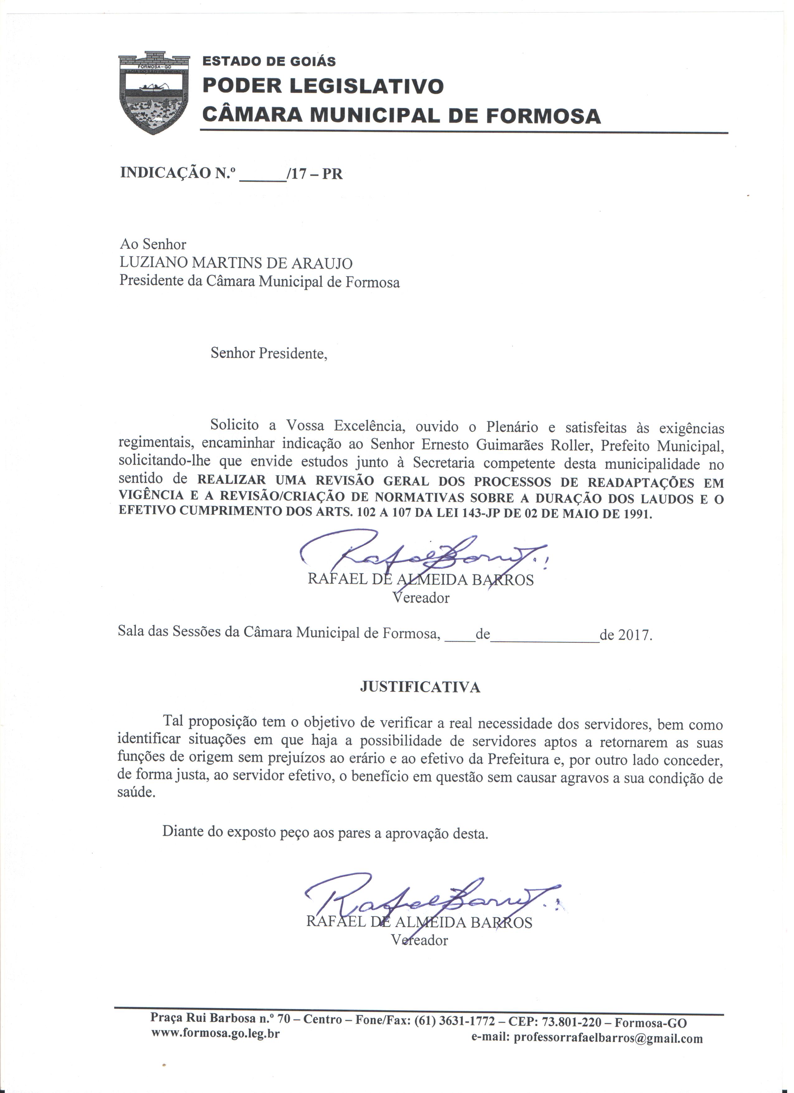 Ementa: REALIZAR UMA REVISÃO GERAL DOS PROCESSOS DE READAPTAÇÕES EM VIGÊNCIA E A REVISÃO/CRIAÇÃO DE NORMATIVAS SOBRE A DURAÇÃO DOS LAUDOS E O EFETIVO CUMPRIMENTO DOS ARTS. 102 A 107 DA LEI 143-JP DE 02 DE MAIO DE 1991.
