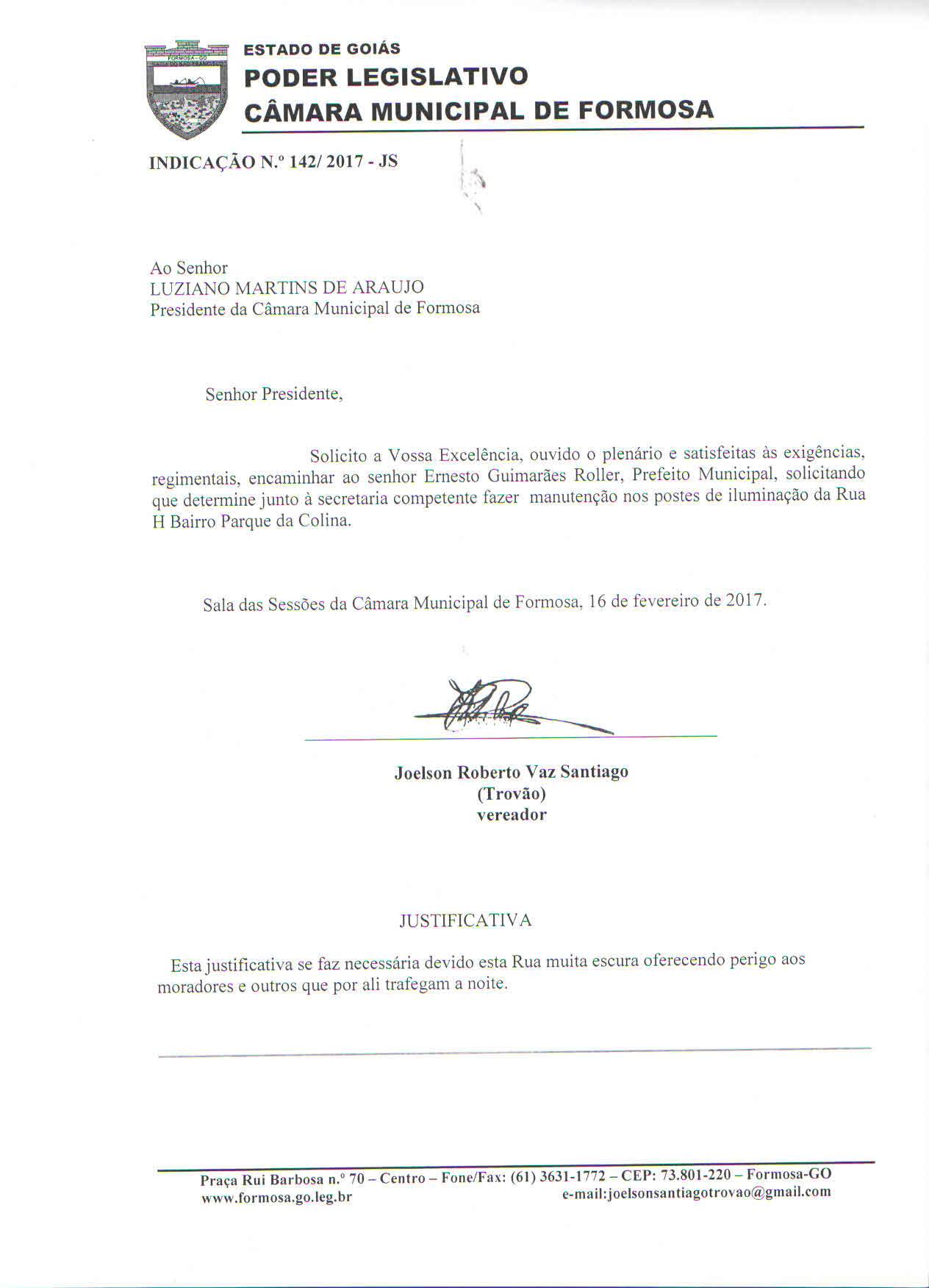 Ementa: EFETUAR MANUTENÇÃO NO SISTEMA DE ILUMINAÇÃO PÚBLICA DO DISTRITO DE SANTA ROSA, MUNICÍPIO DE FORMOSA/GO.