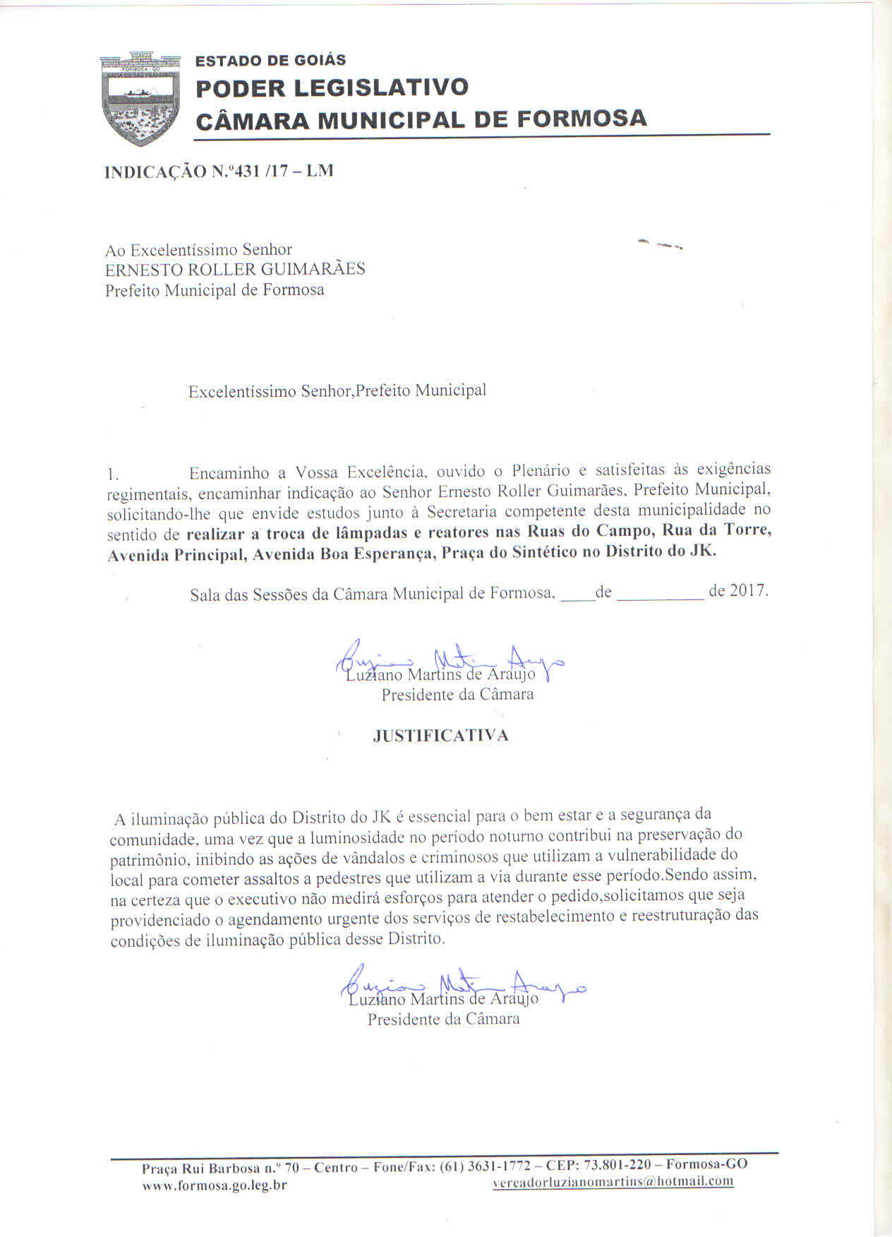 Ementa: REALIZAR TROCA DE LÂMPADAS E REATORES NAS RUAS DO CAMPO, RUA DA TORRE, AVENIDA PRINCIPAL, AVENIDA BOA ESPERANÇA, PRAÇA DO SINTÉTICO NO DISTRITO JK.