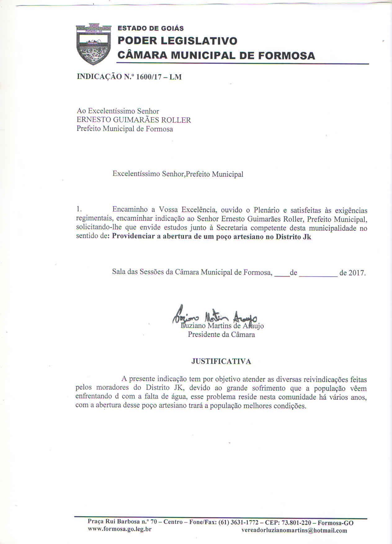 PROVIDENCIAR A ABERTURA DE UM POÇO ARTESIANO NO DISTRITO JK. - |