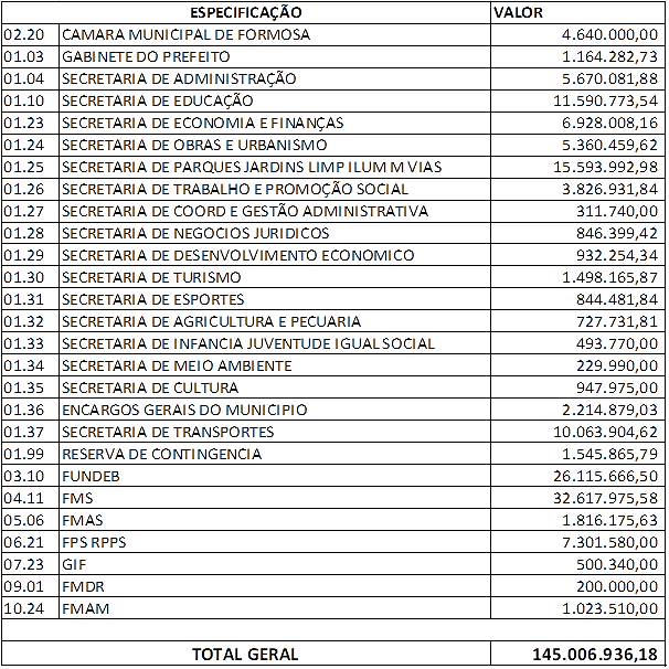 Gabinete do Prefeito, Prefeitura Municipal de Formosa, em 30 de dezembro de 2010.